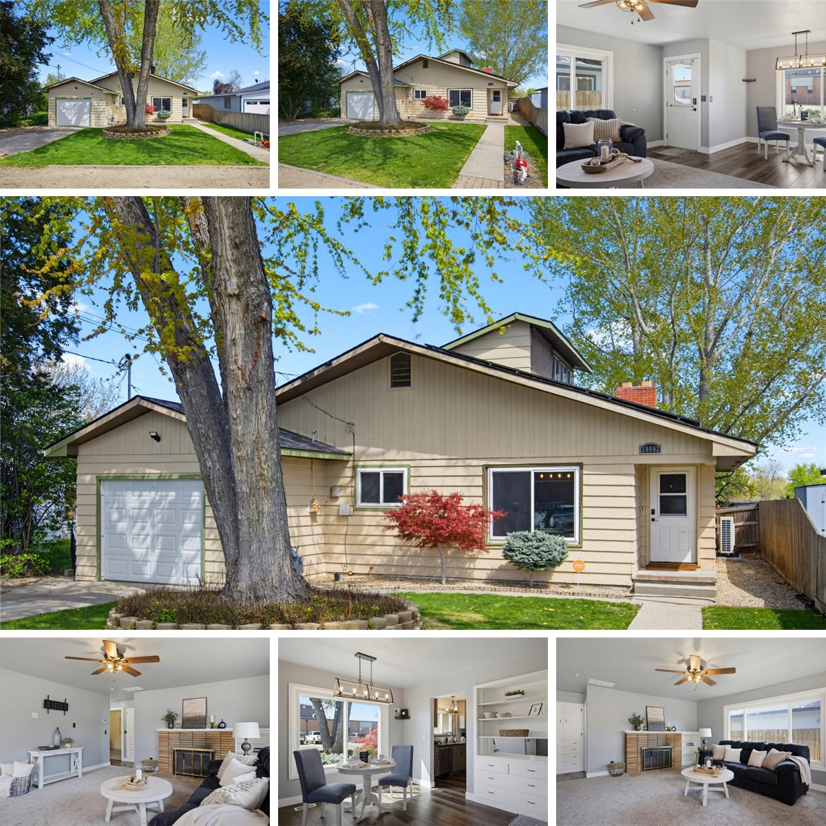 Welcome to the charm of Greenleaf, small town living just minutes from Caldwell. This thoughtfully updated home offers an abundance of upgrades, blending rural living with modern comforts. The remodeled kitchen features granite countertops, custom knotty alder cabinets (soft close), and SS appliances. Move-in ready with fresh paint, new trim & doors, and new carpet downstairs. Fully remodeled downstairs bath with charming barn door. Upstairs primary suite offers vaulted ceilings, abundant natural light, fresh paint, and a ductless unit. The spacious primary bath includes items to finish some updating; seller has included a granite slab counter-top w/2 sinks and white subway tile. The versatile recreation room offers space & flexibility; whether it’s a home office, play area, man cave or family room —just add your desired flooring. Major upgrades include SOLAR w/ battery backup, tankless water heater, whole-house filtration system w/water softener, updated plumbing & electrical, new ductwork, HVAC (2020), and roof (2017), plus a transferable Vivint security system. New windows in the living, dining and kitchen too. Enjoy a fully fenced yard with automatic irrigation, fire pit, producing peach tree, covered/enclosed patio ready for your finishing touches, plus a powered 10x20 shop with 220V & AC, AND a 7x20 shed for additional storage. Garage has a loft area for extra storage.